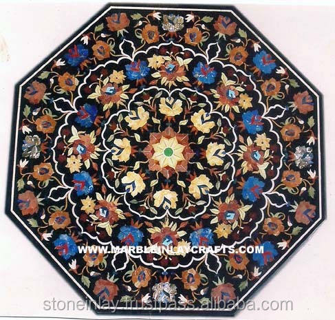 Mesa de mármol negro, forma octogonal, hecha a mano, calidad fina