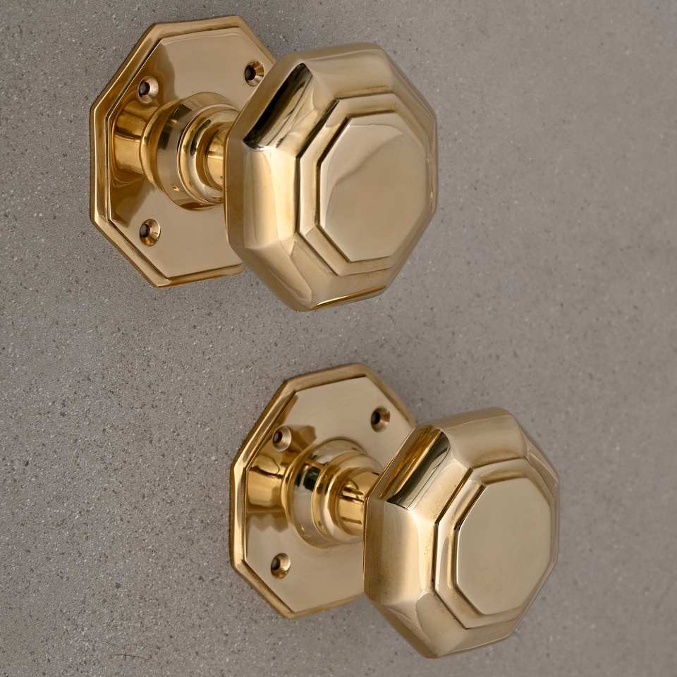 Perillas de puerta de Metal de forma octogonal para decoración de puerta interior y exterior artículos de Hardware de muebles de lujo para puertas de cocina de oficina en casa