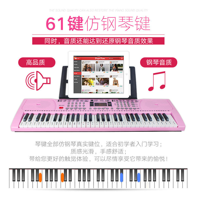 Teclado Electrónico Octave Baby de 61 Teclas 615 para Niños con Soporte Musical y Luces LED Color Rosa