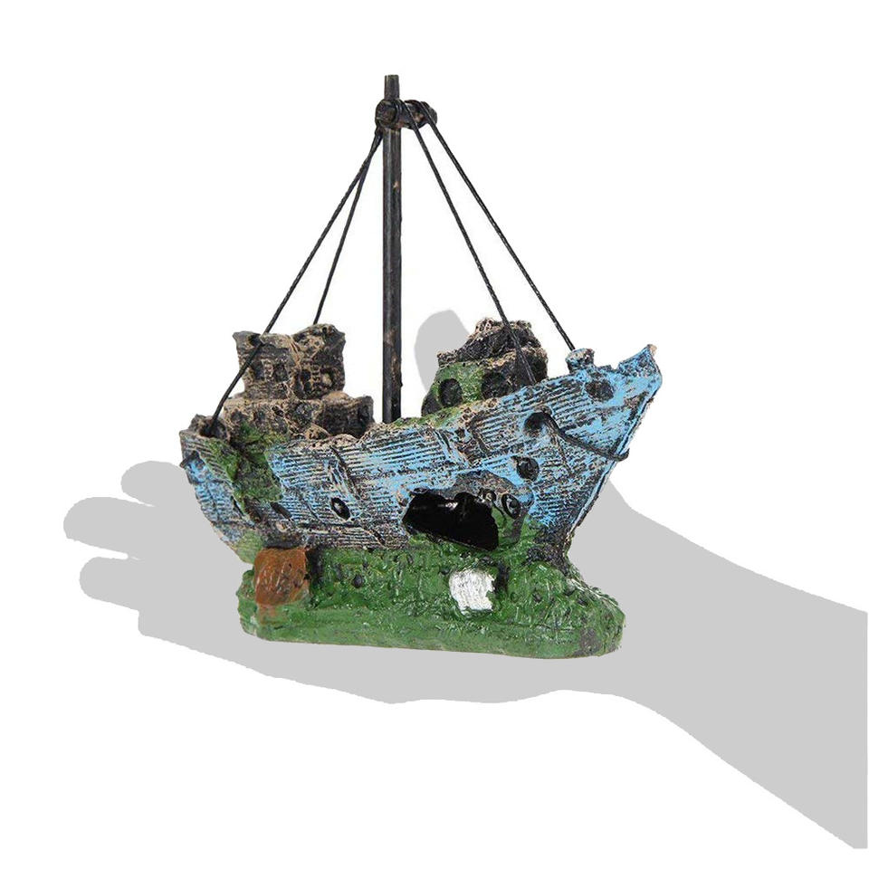 Octopus Brother casa falsa juguete pecera Castillo submarino resina montaña Barco de plástico
