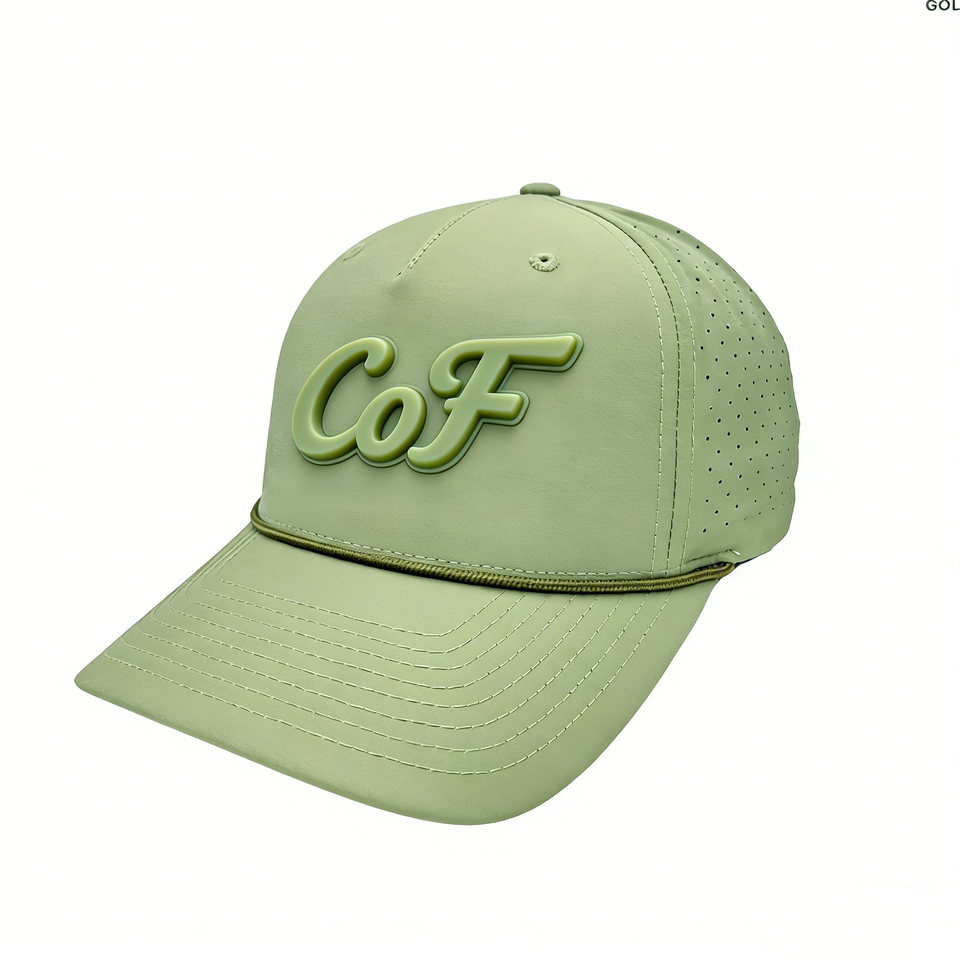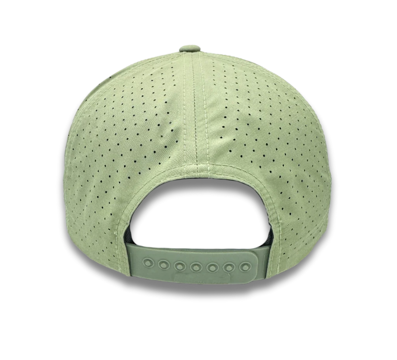 Gorra de béisbol OEM personalizada de 5 paneles con malla perforada cortada a láser, estilo deportivo, rendimiento impermeable, visera curva y cuerda