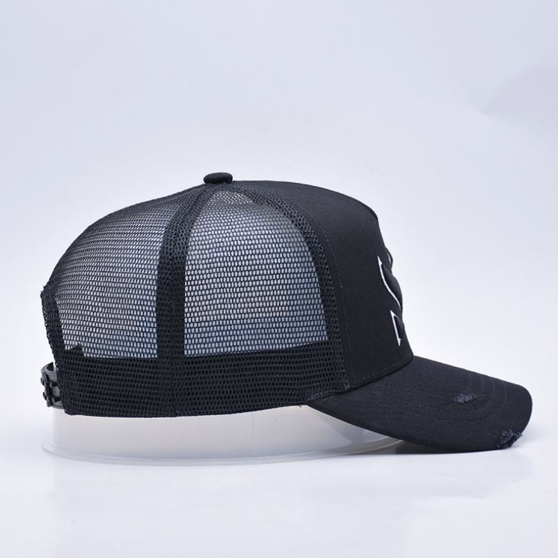 Gorra de camionero bordada 3D de 5 paneles de alta calidad personalizada OEM, gorra de camionero desgastada negra para hombre