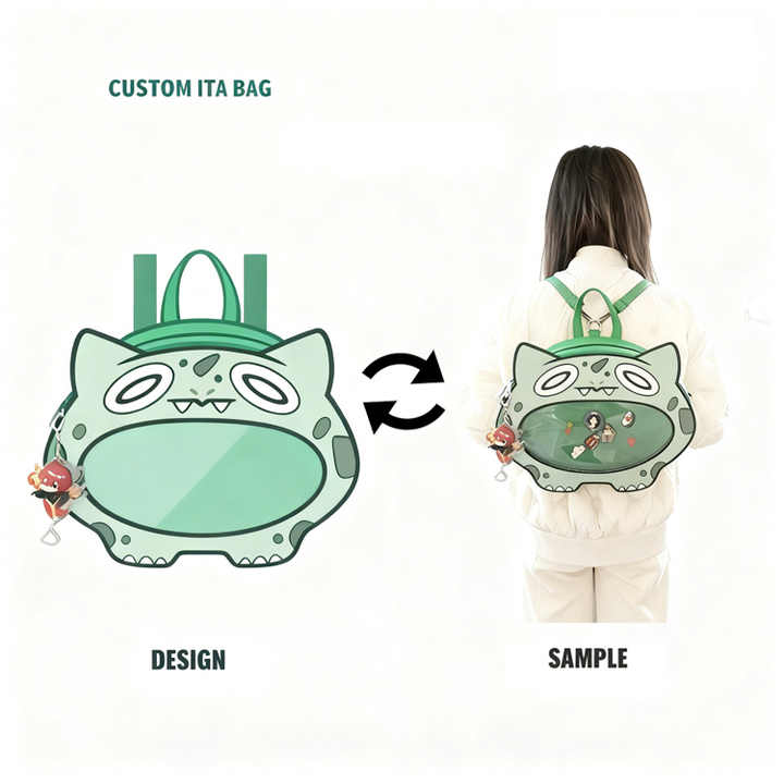 Mochila de exhibición estilo Harajuku con ventana transparente, diseño de monstruo de dibujos animados kawaii, personalizada OEM, grande, con forma de anime, estilo Ita Bag