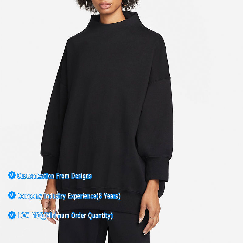 Jersey de algodón con logotipo personalizado OEM, sudadera deportiva moderna de manga larga con cuello falso de peso pesado, sudadera deportiva de gran tamaño para mujer