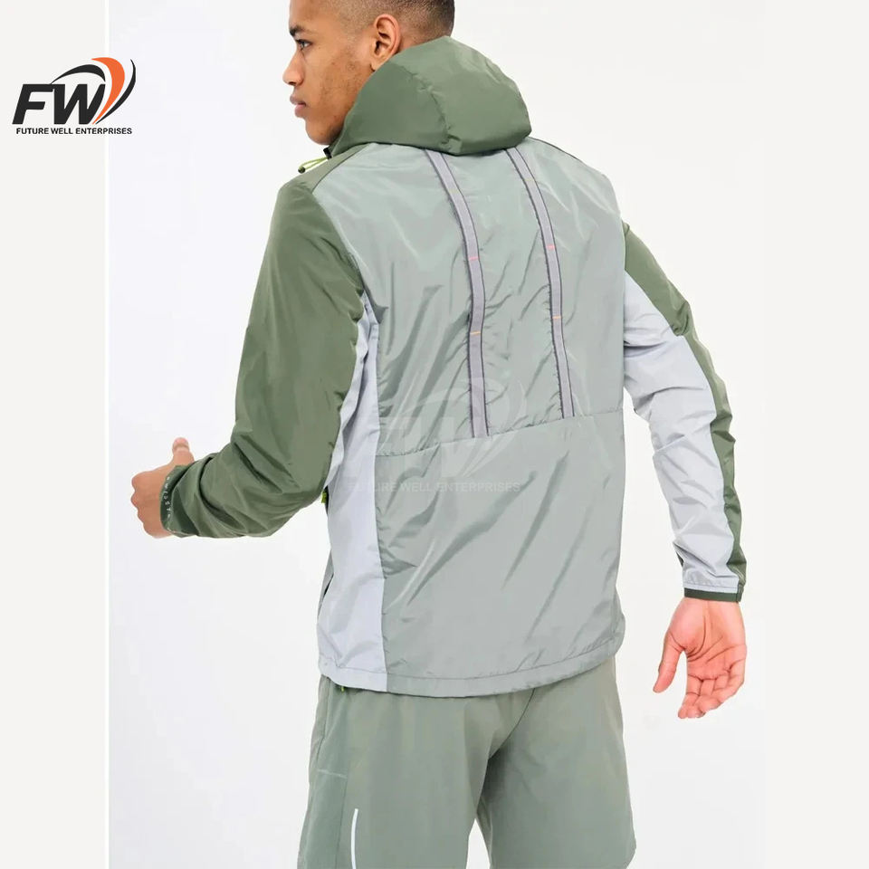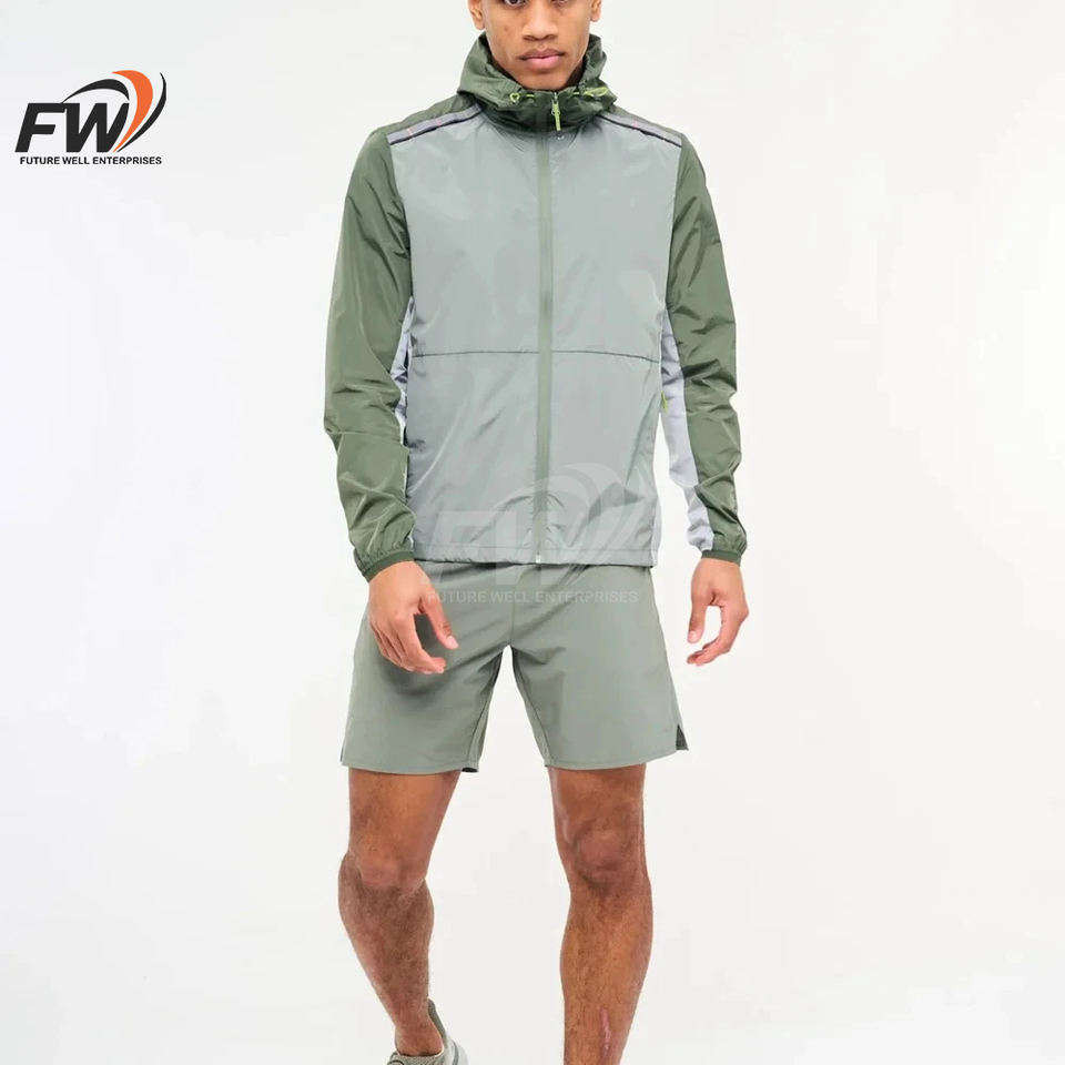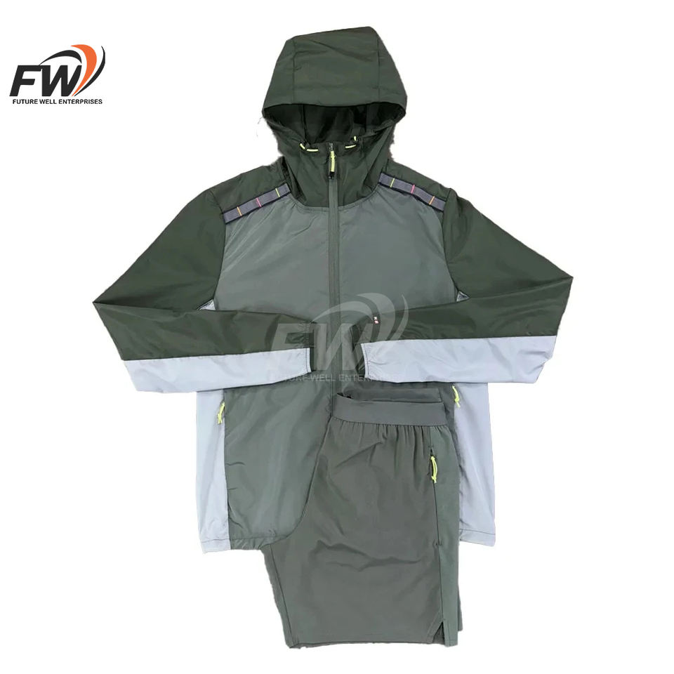 Chaqueta y pantalón cortavientos de nailon suave con logotipo personalizado OEM, conjunto de dos piezas para hombre, chándal cortavientos.