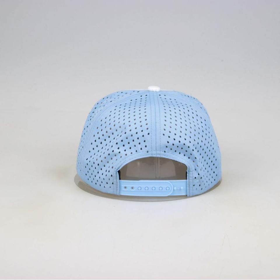 Gorra de Béisbol Personalizada para Hombre, 6 Paneles, Logotipo Bordado, Orificios Cortados con Láser, Dos Tonos, Poliéster, Visera Plana, Cierre a Presión