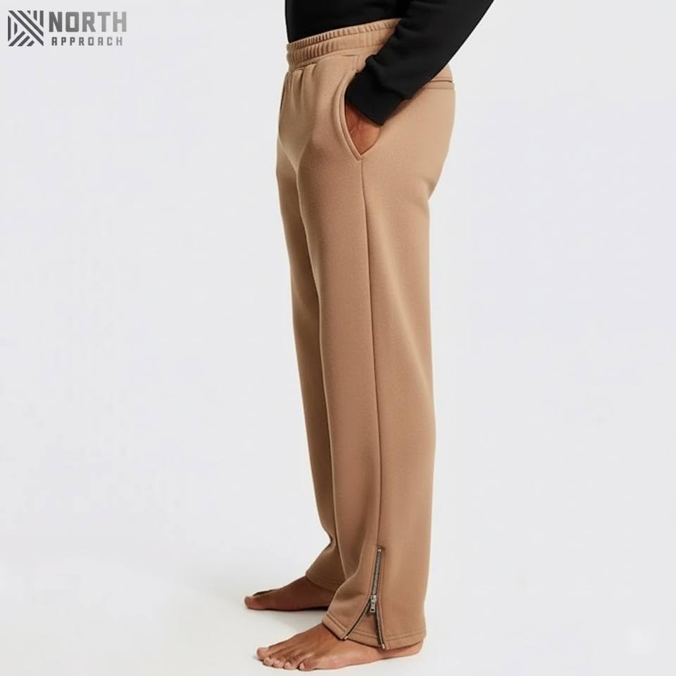 OEM personalizado grueso algodón polar inferior Jogging Wear francés Terry pantalones de chándal de peso pesado Zip Slit Hem Flare Pantalones de los hombres
