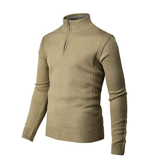 OEM personalizado bordado diseño de logotipo de manga larga de punto con cremallera Stand Collar hombres Casual Slim Pullover Sweater
