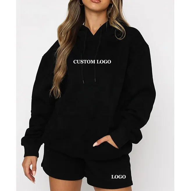 Conjunto de 2 piezas de tela de rizo francés para mujer, chándal personalizado con logotipo, Color sólido, Oem