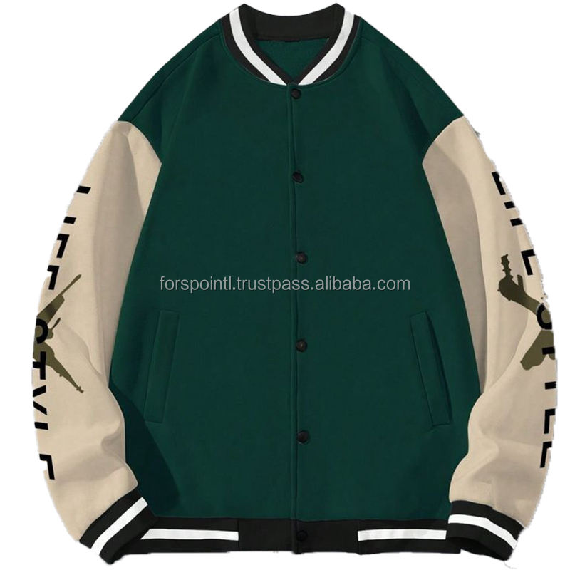 Oem alta calidad parche bordado hombres Universidad personalizado béisbol bombardero Letterman cuero manga Varsity chaqueta