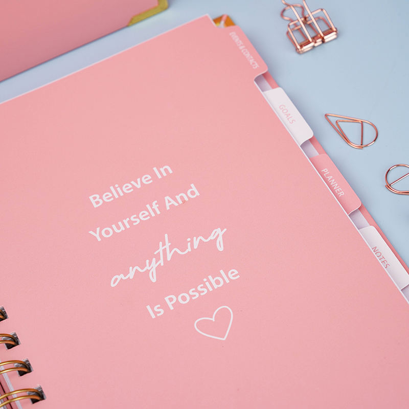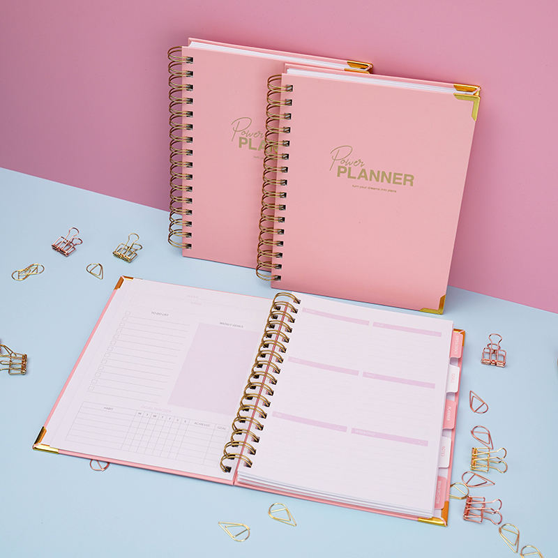 Cuaderno OEM con Logotipo Personalizado A5 Rosa en Espiral para Manifestación de Metas, Diario, Agenda y Planificador Semanal y Mensual