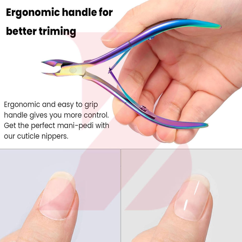 Cortacutículas Profesional de Acero Inoxidable con Recubrimiento de Titanio Multicolor Arcoíris, Servicio OEM, Tijeras para el Cuidado de las Uñas