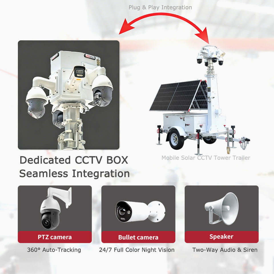 Torre de Vigilancia Móvil con Energía Solar, Sin Conexión a la Red, con Cámara CCTV, Visión Nocturna, Tarjeta SD, Sistema de Seguridad para Obras de Construcción