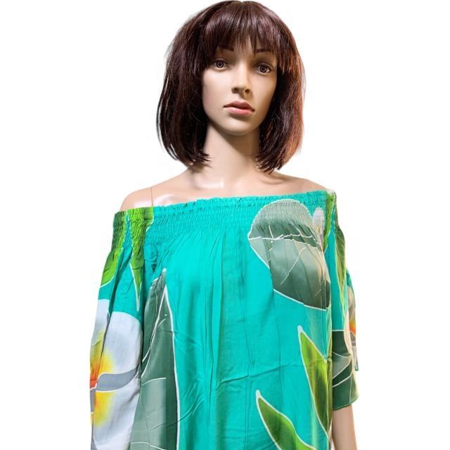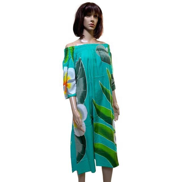 Vestido con hombros descubiertos hecho de pintura a mano 100% tejido de rayón para vestidos de mujer