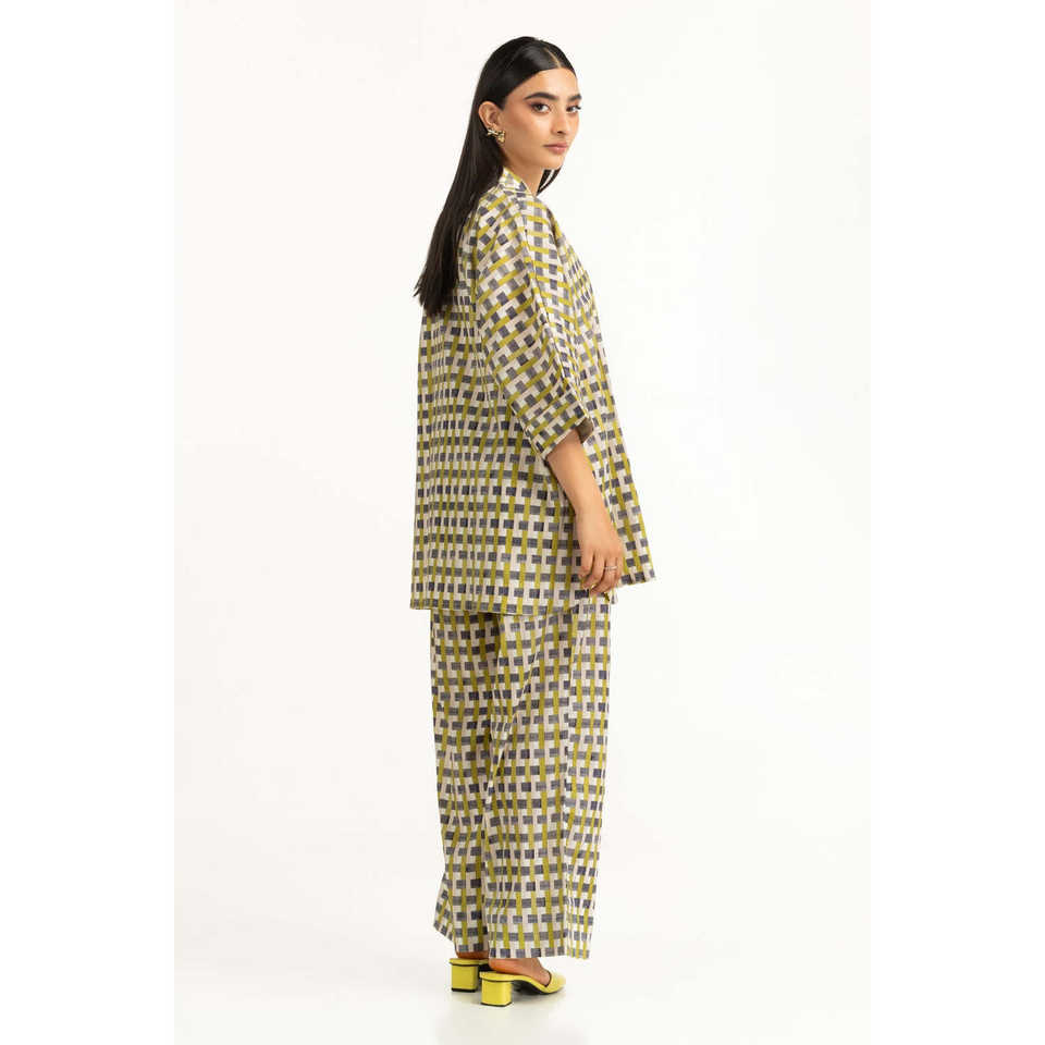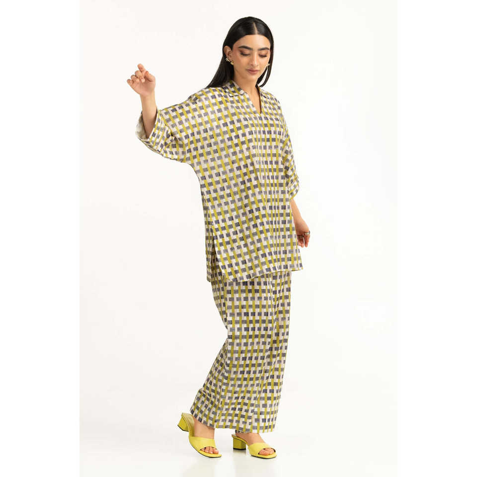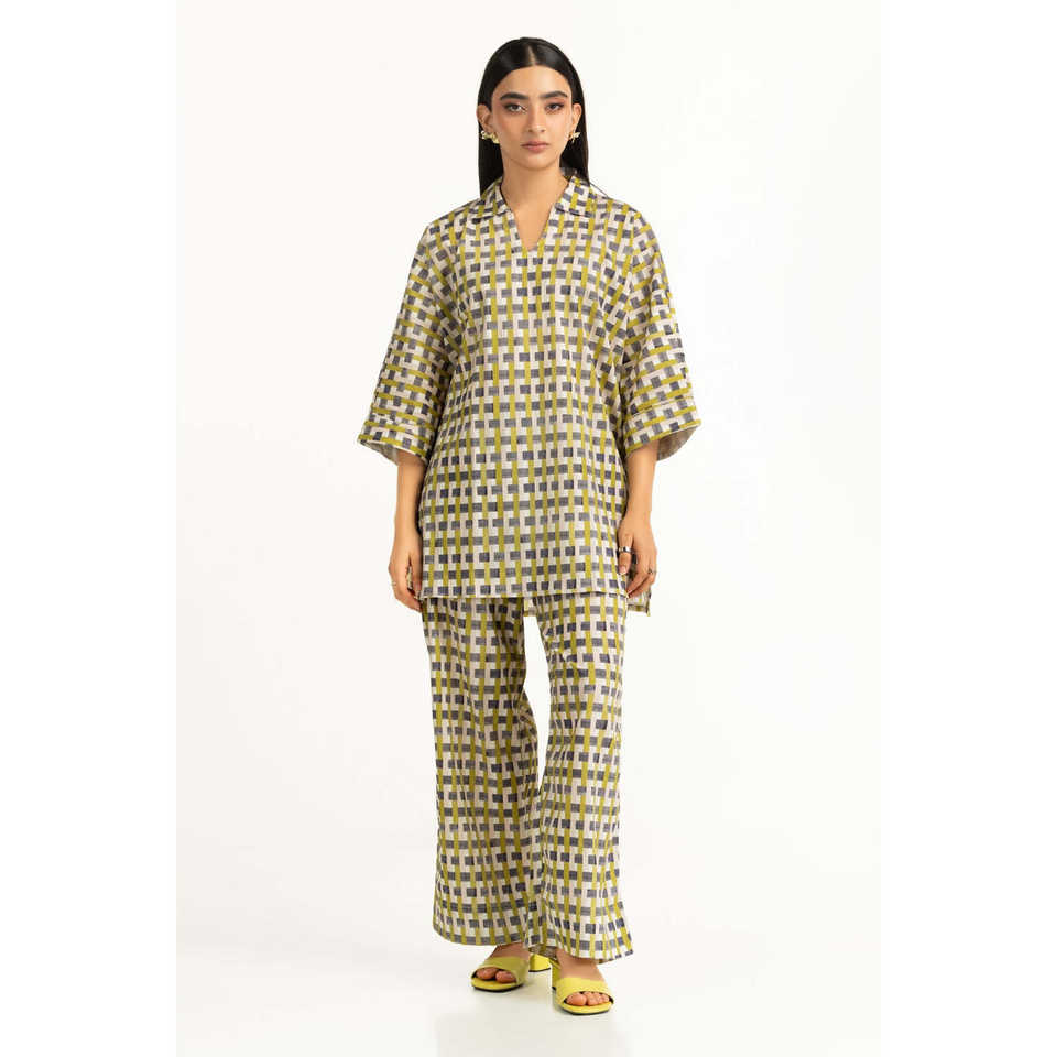 Conjunto de 2 Piezas Off-White con Estampado Ondulado y Textura Arrugada, Transpirable, para Mujer, Casual, Tela Crepé, Talla XS, Sin Cuello, Shorts