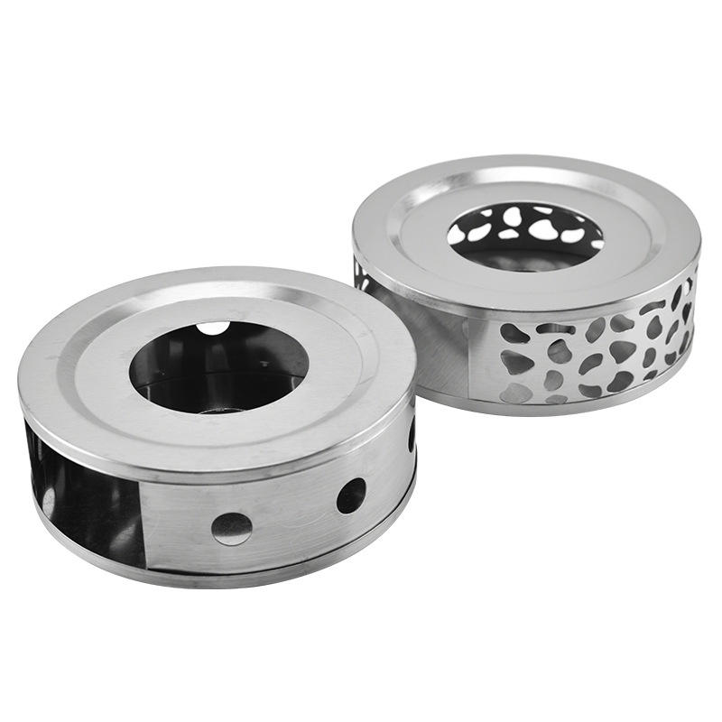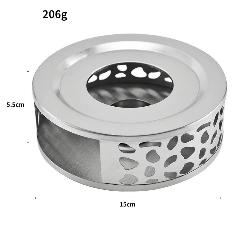 Calentador de tetera de vidrio de acero inoxidable para té y café redondo plateado portátil para el hogar de oficina con calentador de velas