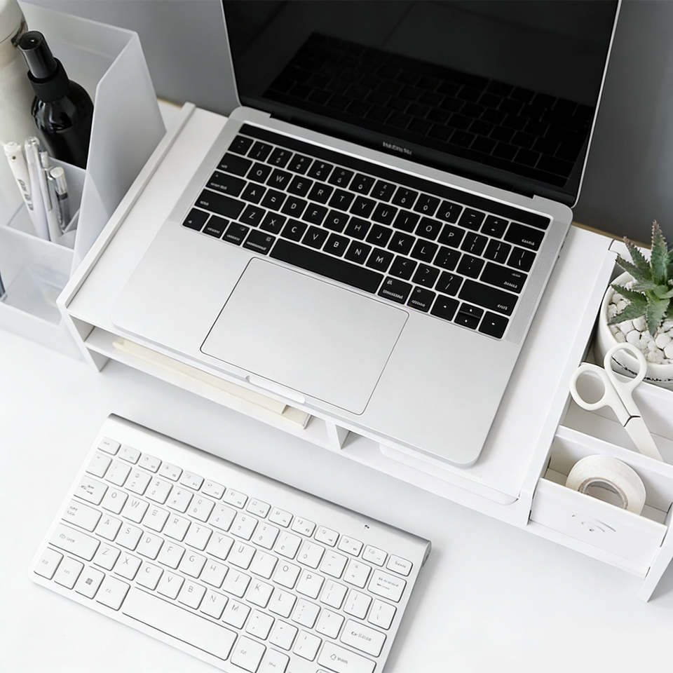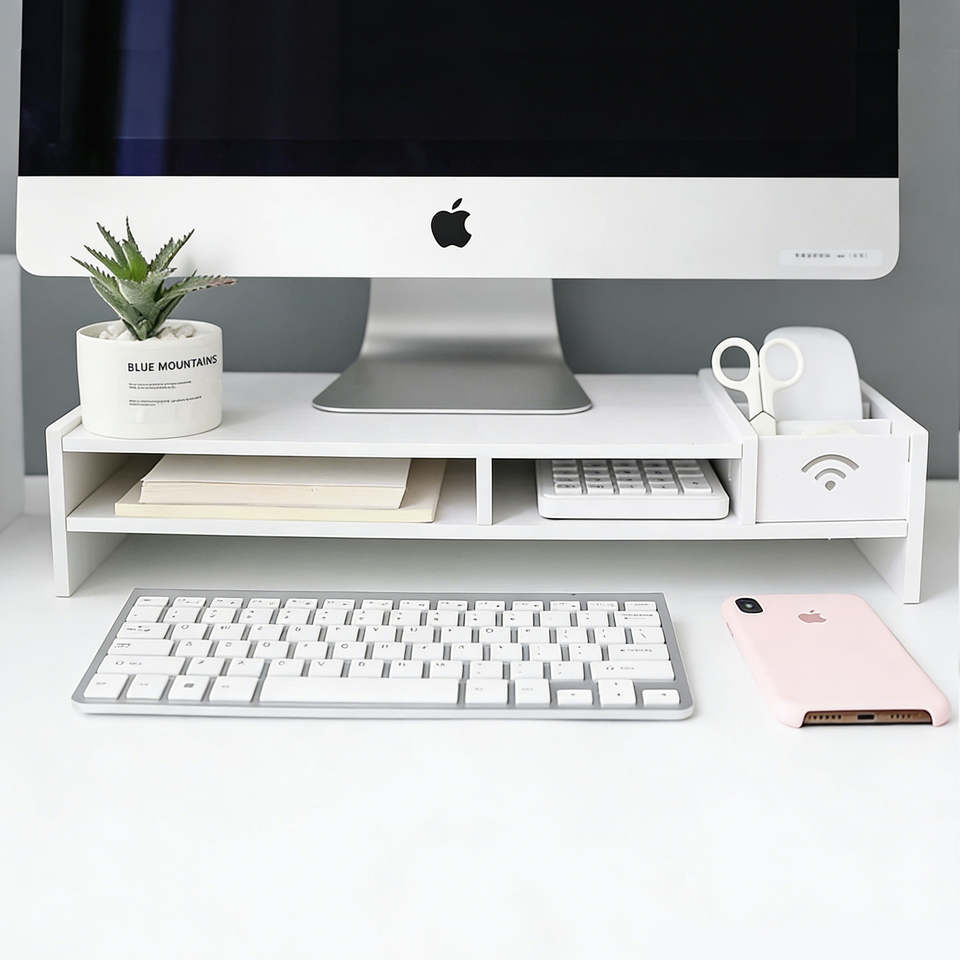 Soporte Multifuncional de 2 Niveles para Monitor de Computadora y Portátil, Base de Madera con Organizador de Almacenamiento para Papelería