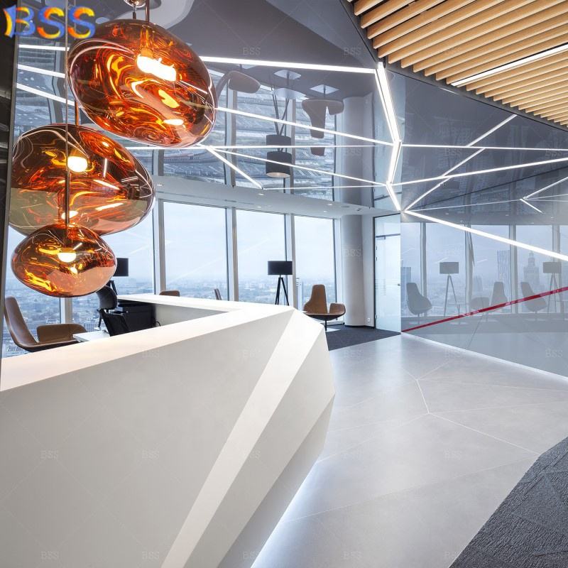 Decoración de área de recepción y oficina, diseño creativo, alto Cristal, estilo L, luz blanca, Coriano, acrílico, blanco, sala de recepción
