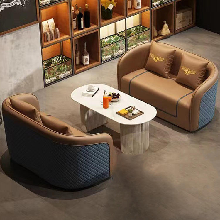 Conjunto de Sofás de Oficina, Cuero PU, Esponja de Alta Densidad, Muebles Comerciales para Sala de Estar y Reuniones, Estilo Nórdico, Diseño de Lujo Ligero