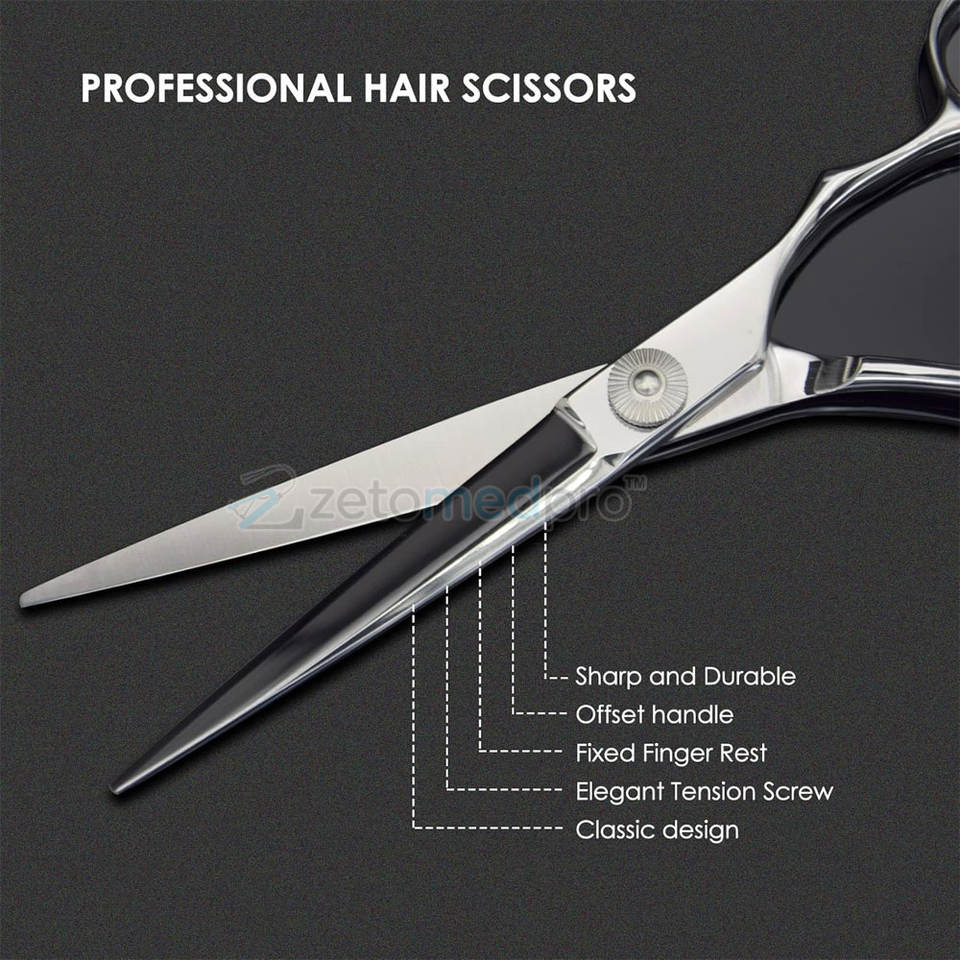 Palabra clave:Tijeras de peluquería de acero inoxidable con mango desplazado para cortar el pelo