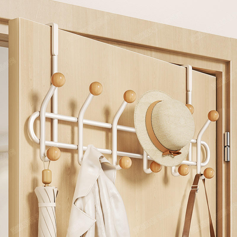 Perchero rectangular Offwhite para colgar sobre la puerta, organizador de ropa montado en la pared con bolas de madera para almacenamiento en la entrada