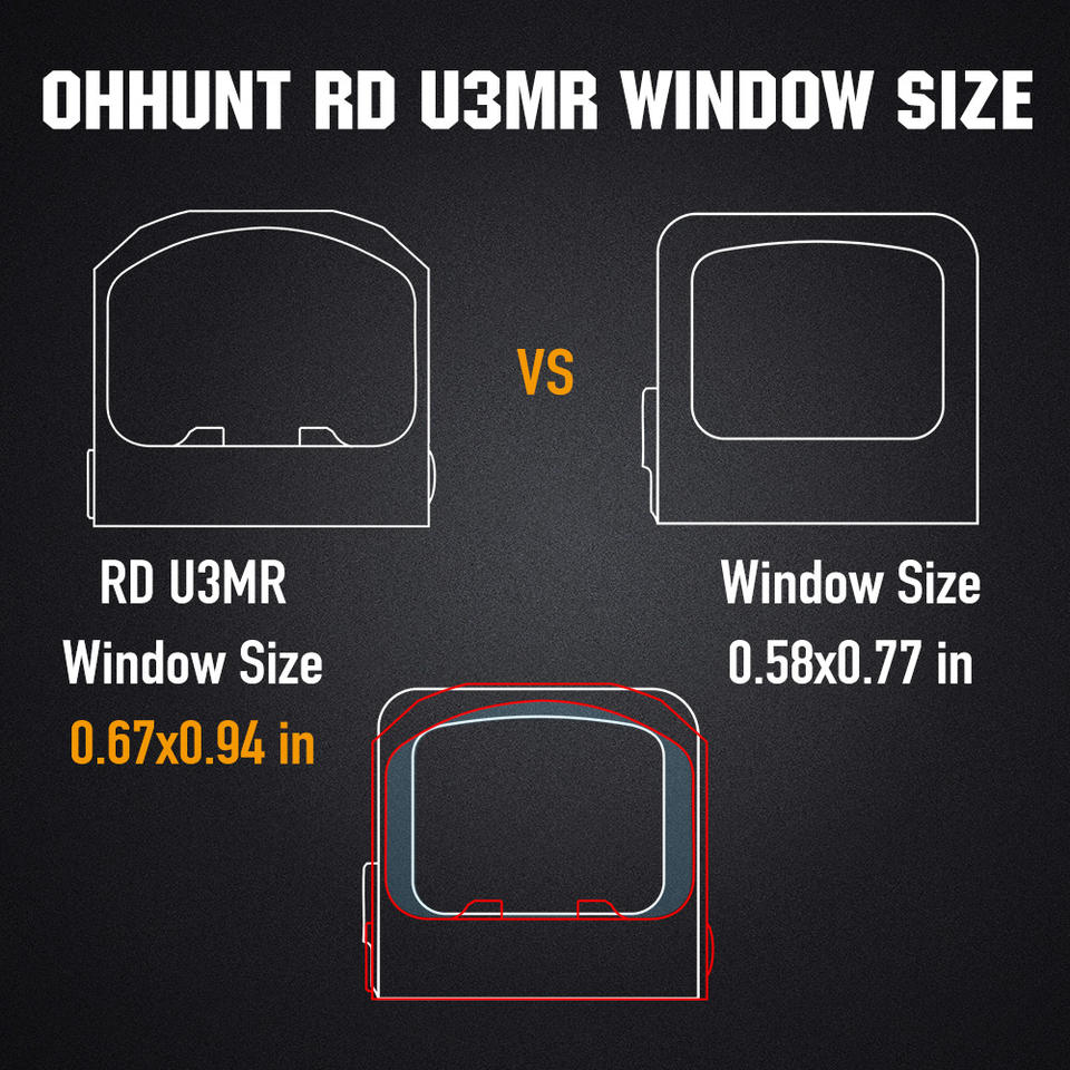 Mira de punto rojo grande de 24x17 con ventana grande y retícula de punto circular.