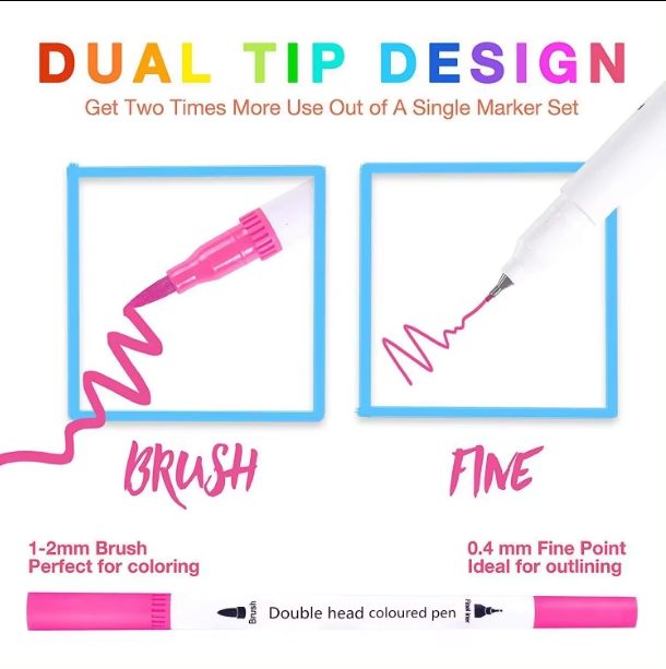Set de Rotuladores Artísticos Ohuhu de Punta Doble No Tóxicos para Estudiantes, Pincel de Acuarela de Punta Fina para Dibujo