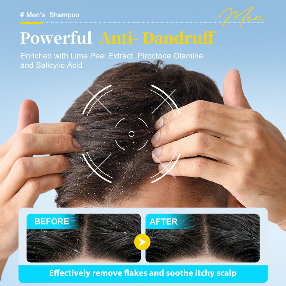 Champú para Hombre Anticaspa, Control de Grasa, Larga Duración, Fresco y Voluminoso