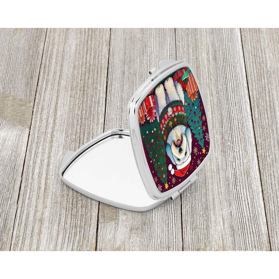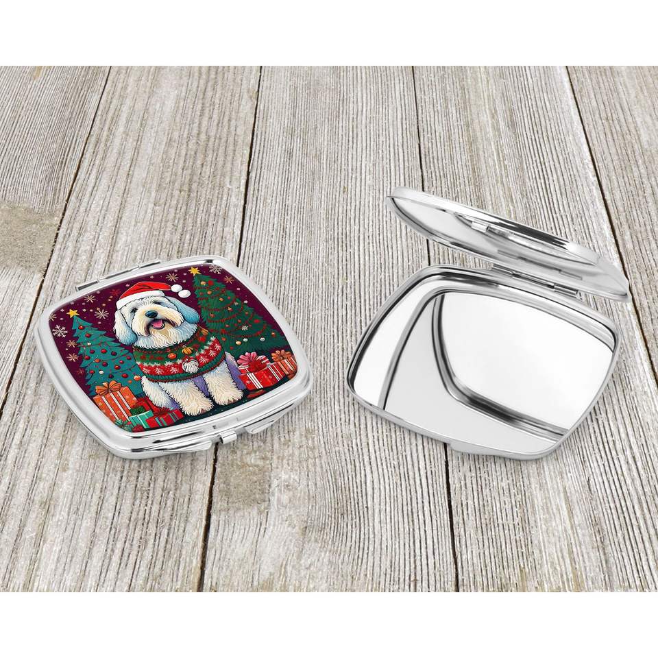 Antiguo perro pastor inglés Navidad compacto viaje maquillaje espejo bolsillo plegable de mano para mujeres y niñas Ideas de regalos decorativos