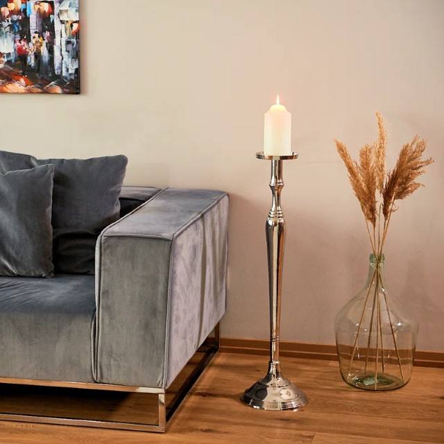 Portavelas de pilar de Grand Hotel del Viejo Mundo, candelabro de pie de suelo alto plateado con tubo de vidrio para decoración del hogar, boda