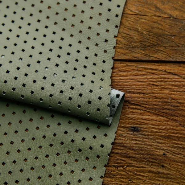 Piel perforada verde oliva disponible en 1 a 22 pies cuadrados para productos de cuero personalizados