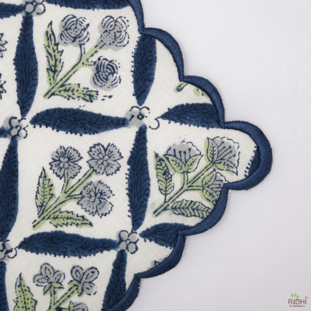 Servilletas de algodón bordadas en tela vaquera azul verde oliva y piedra Hermosa tela de cubierta facial con estampado de bloques de la India