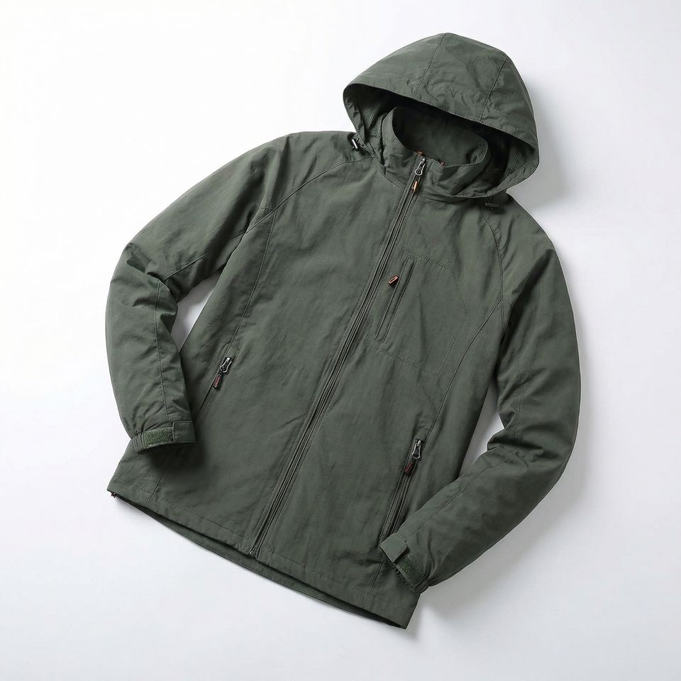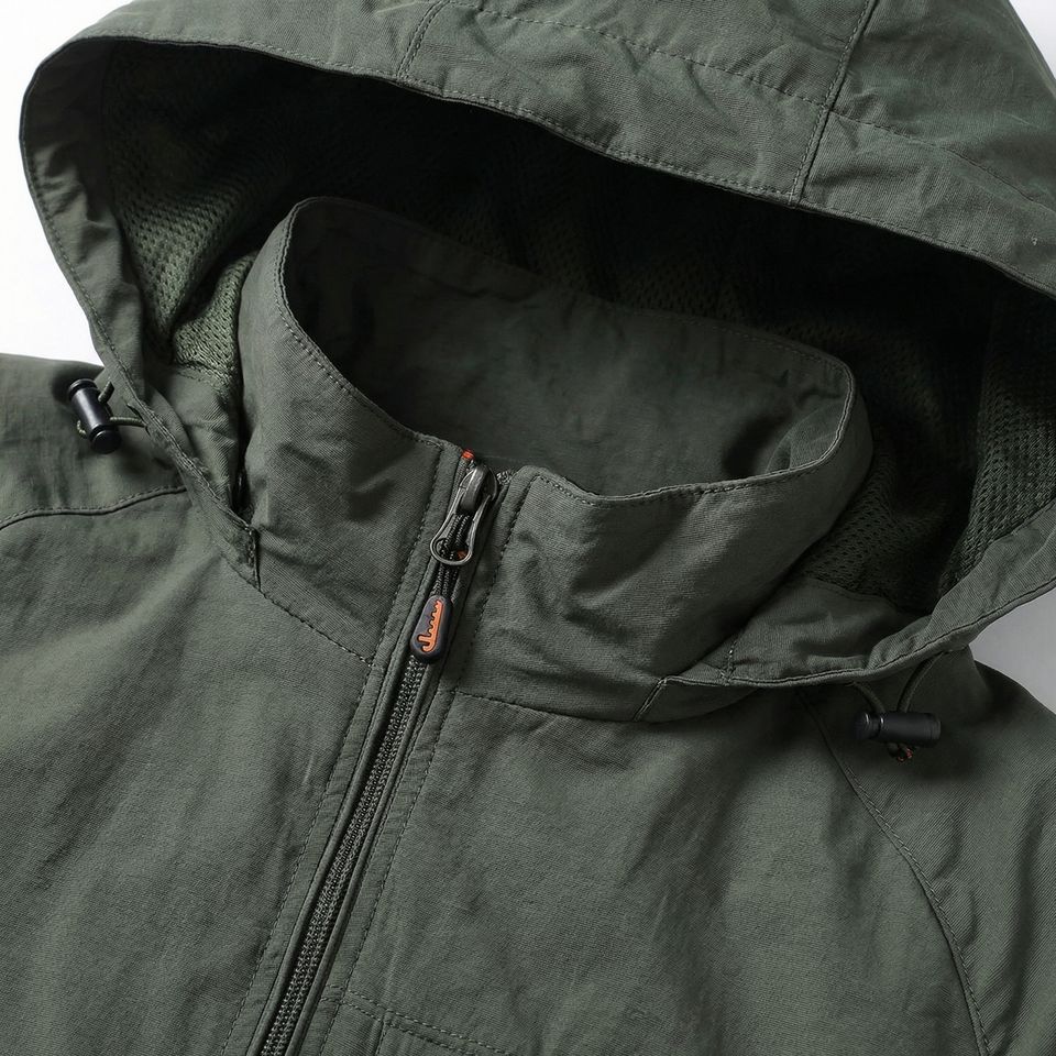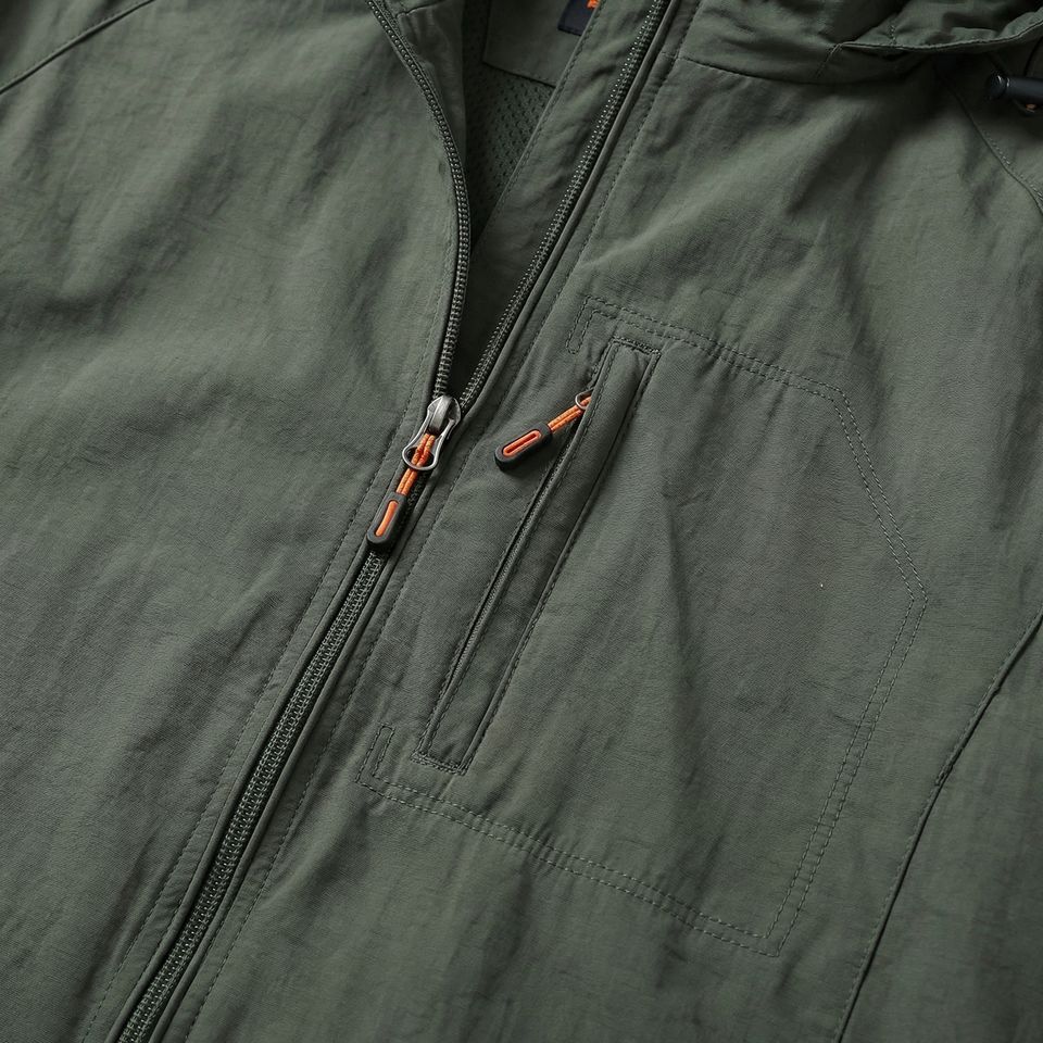 Chaqueta con Capucha Olive — Chaqueta Ligera para Exteriores con Cierre Completo, Mangas Raglán y Bolsillo en el Pecho | Marca Privada OEM/ODM