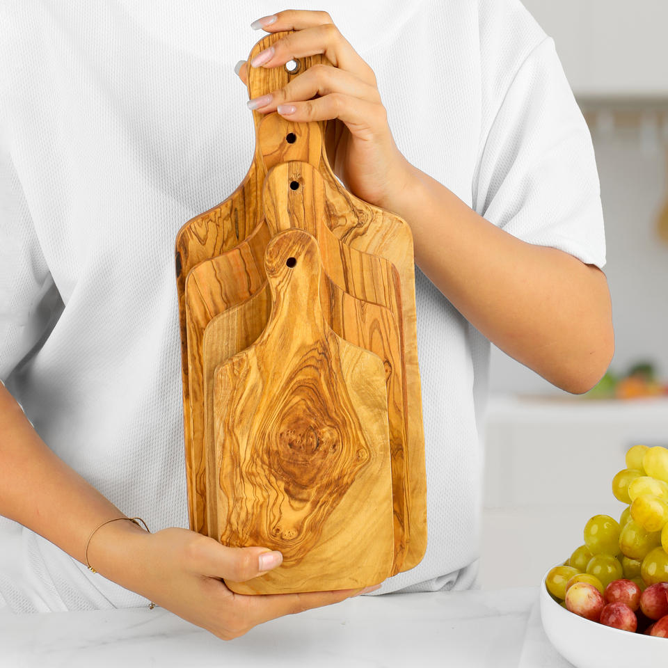 Tabla de cortar y tabla de servicio personalizada de madera de olivo ArtisRaw, bloque de cortar rectangular ecológico CB009