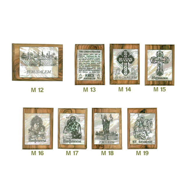 Imanes de madera de olivo religiosos grabados a mano, imágenes cristianas de madreperla para carteles de pared y cajas de madera, artesanías de madera
