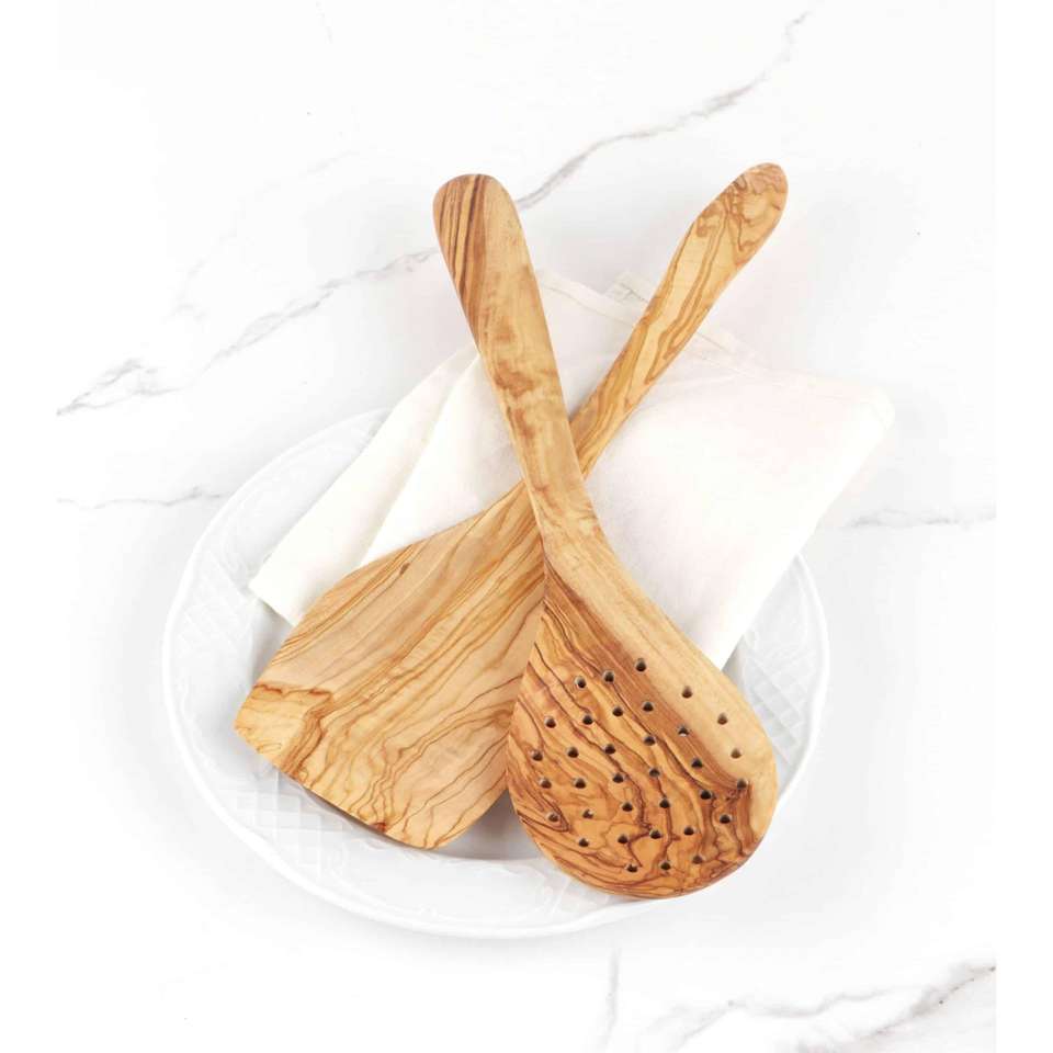 Juego de espátula y cuchara ranurada de madera de olivo Premium hecha a mano, utensilios de cocina rústicos ecológicos para regalos de negocios