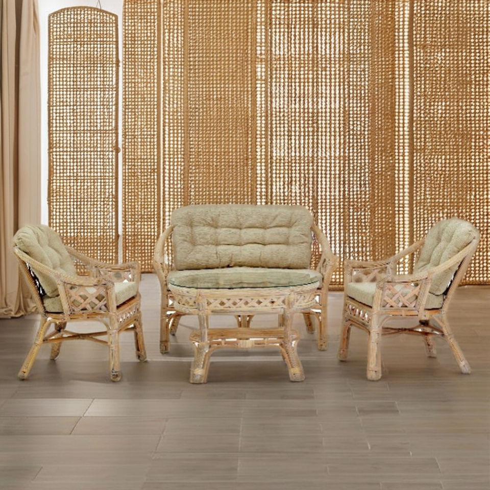 Juego de sala de estar Omara para muebles para el hogar Juego de sofá y sillón elegante de ratán Juego de asientos cómodos duraderos Hecho a mano Natural