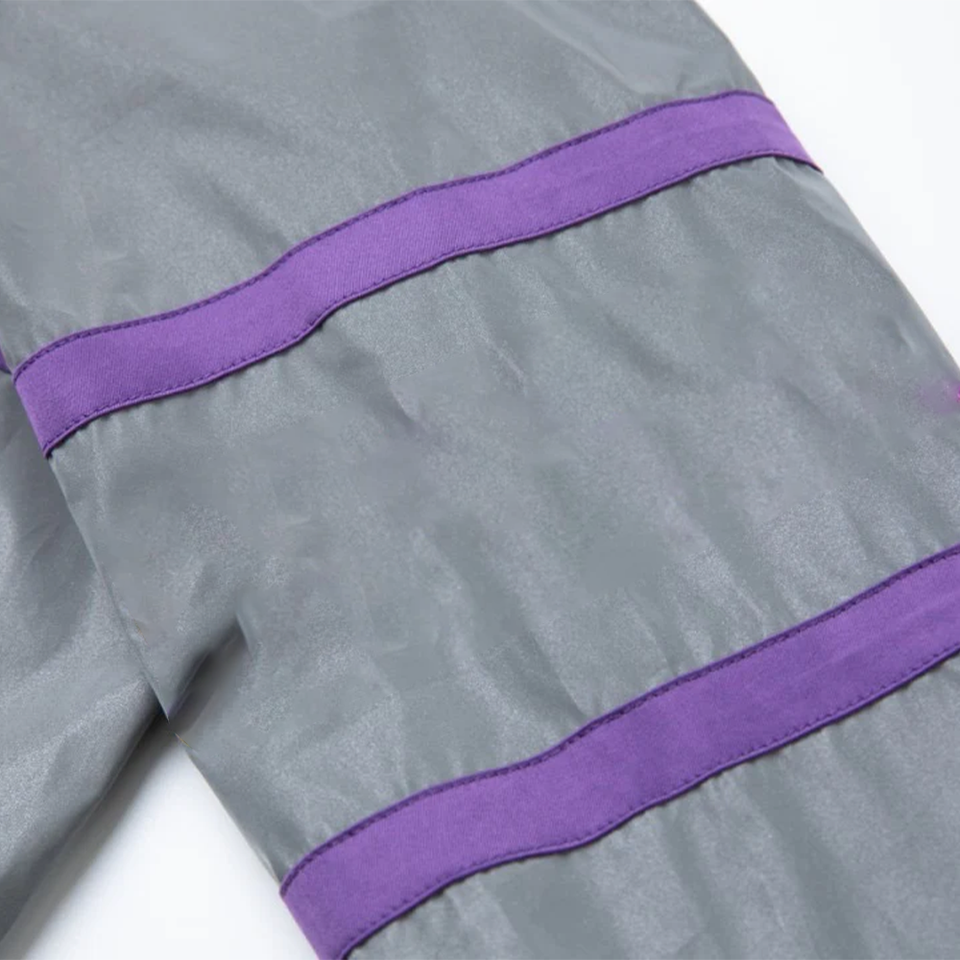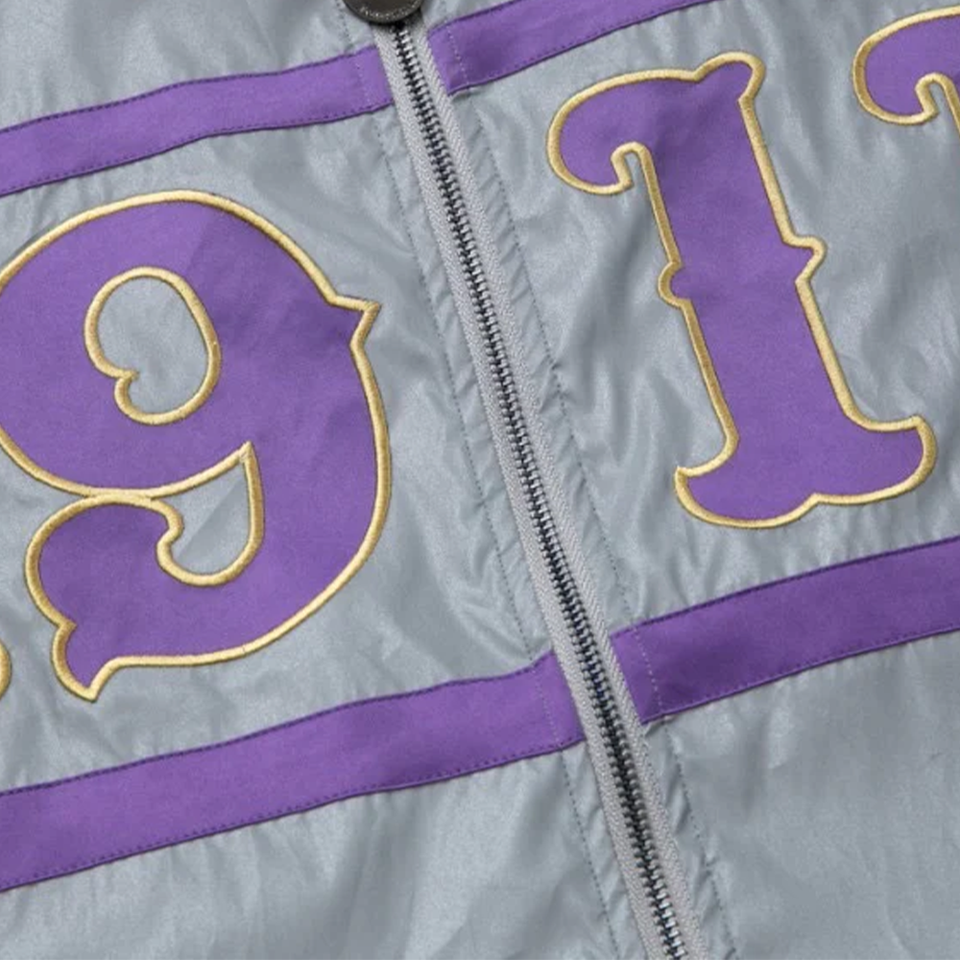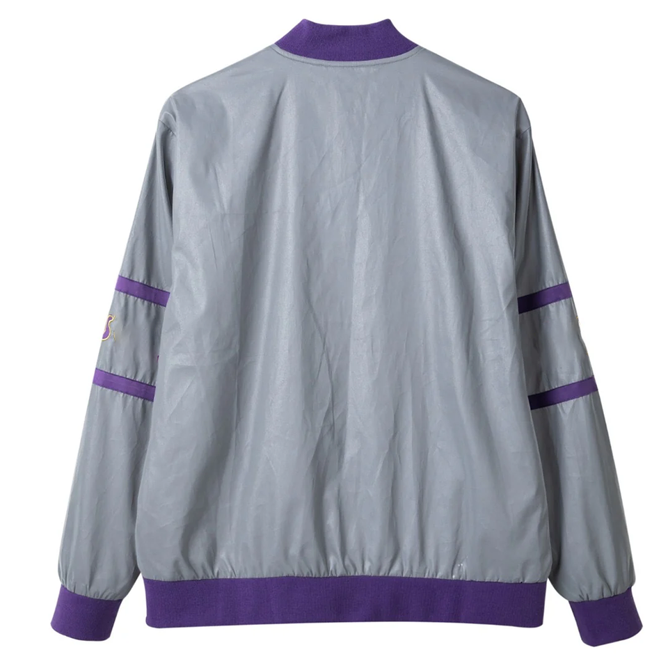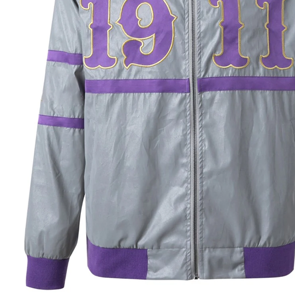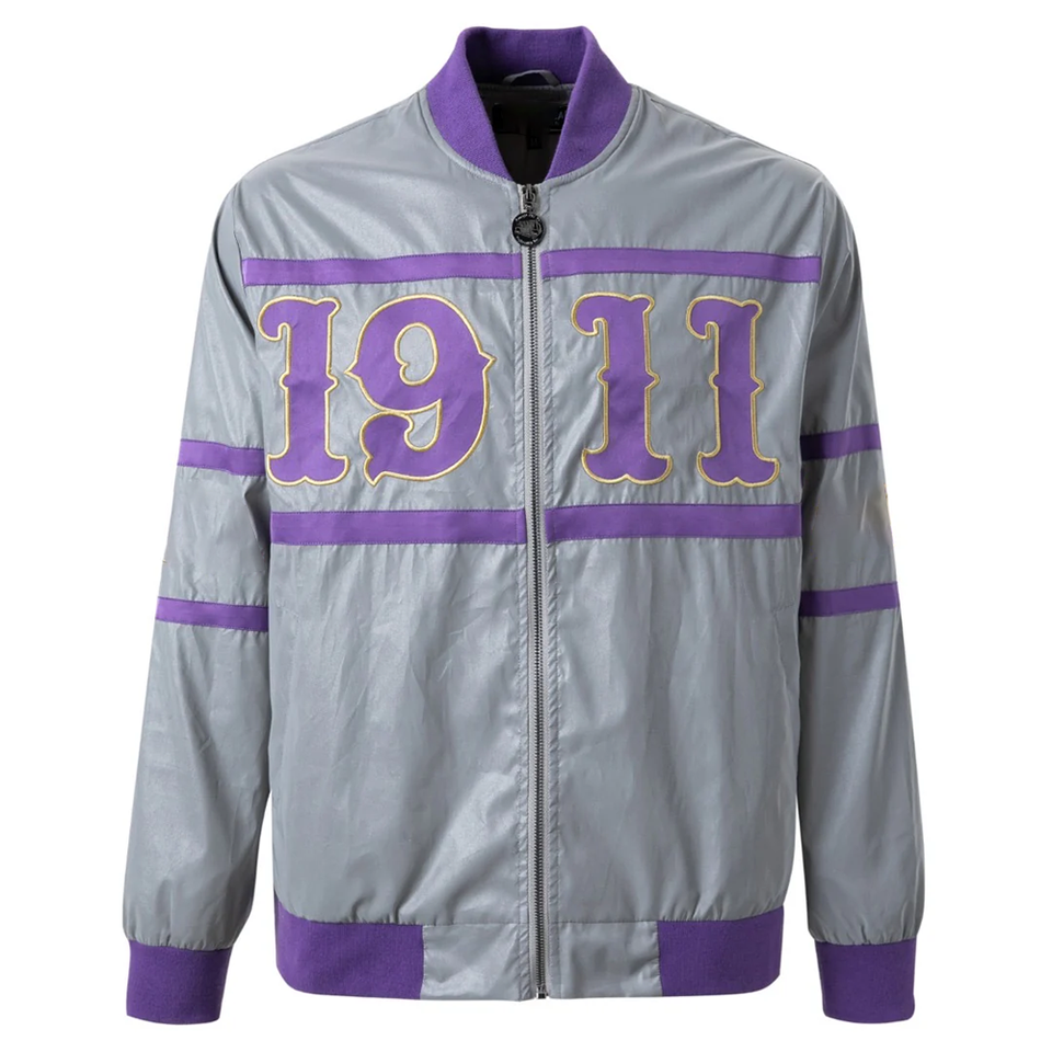 Chaqueta Bomber Reversible Reflectante Omega 3M, Gris y Morado en la Parte Delantera, Premium, Estilo Fraternidad Griega, Impermeable, Urbana, con Ribete Acanalado