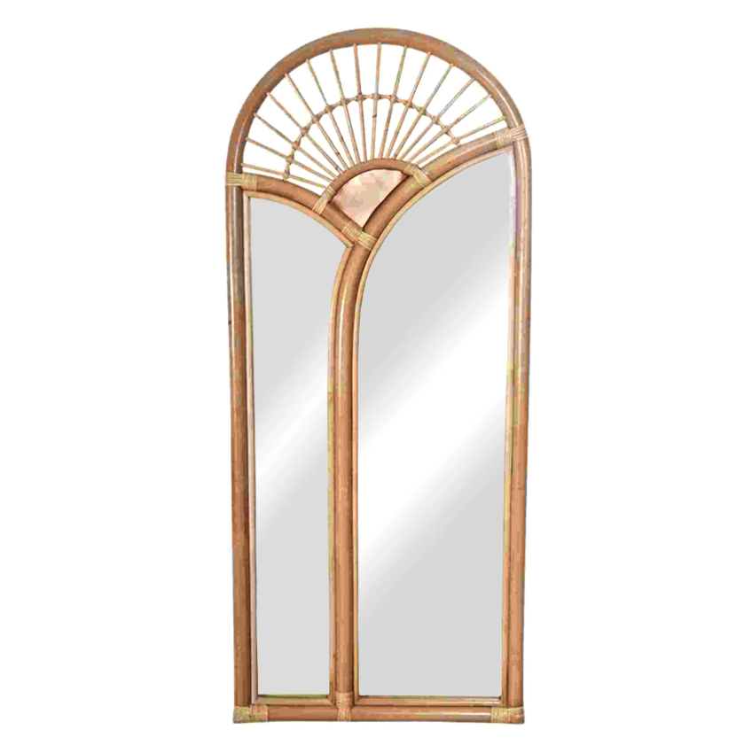 Omkar ratán redondo patrón de flores madera diseño de dibujos animados estilo buena calidad marrón espejo de pared de pie para Decoración