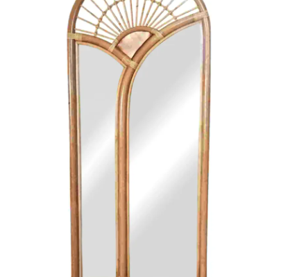 Omkar Rattan Patrón de flores redondas Diseño de dibujos animados de madera Estilo Buena calidad Espejo de pared de pie marrón para fines decorativos