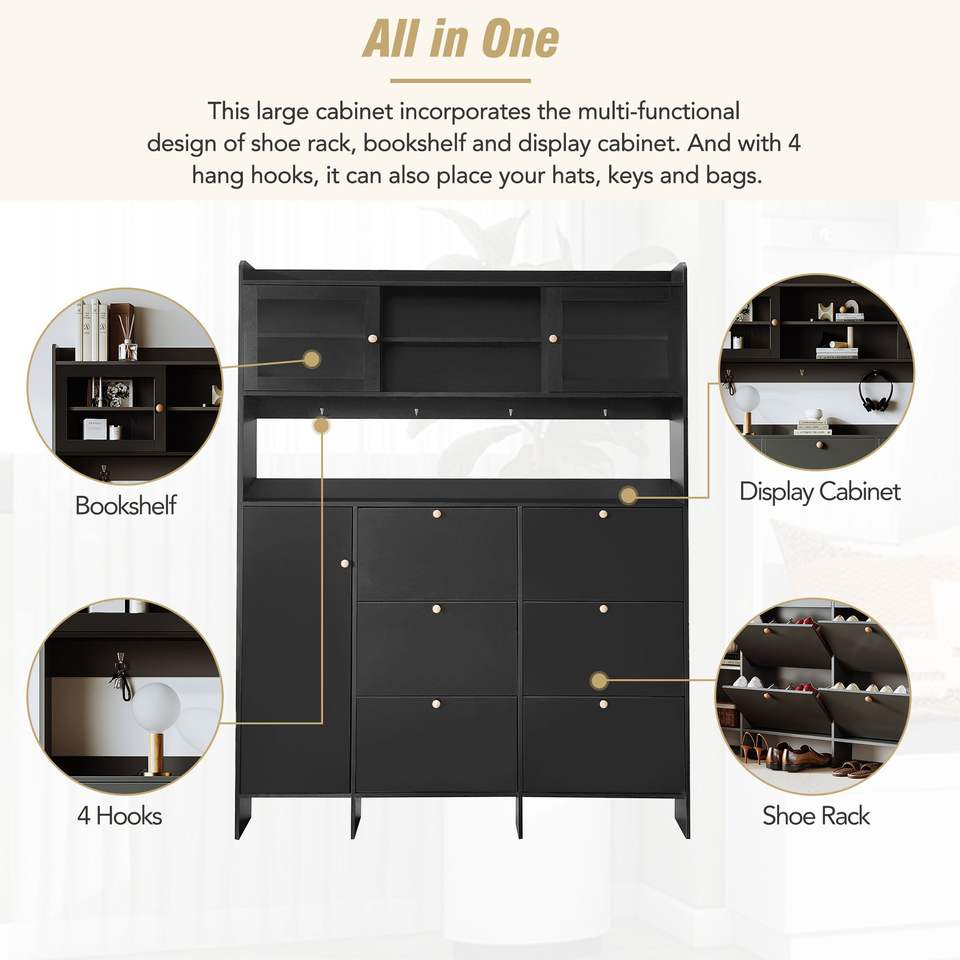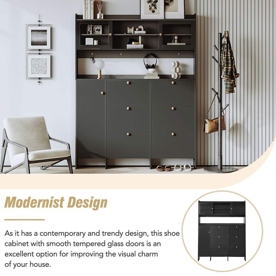 Zapatero multifuncional TREND con 6 cajones abatibles y perchero grande para recibidor - Video del producto