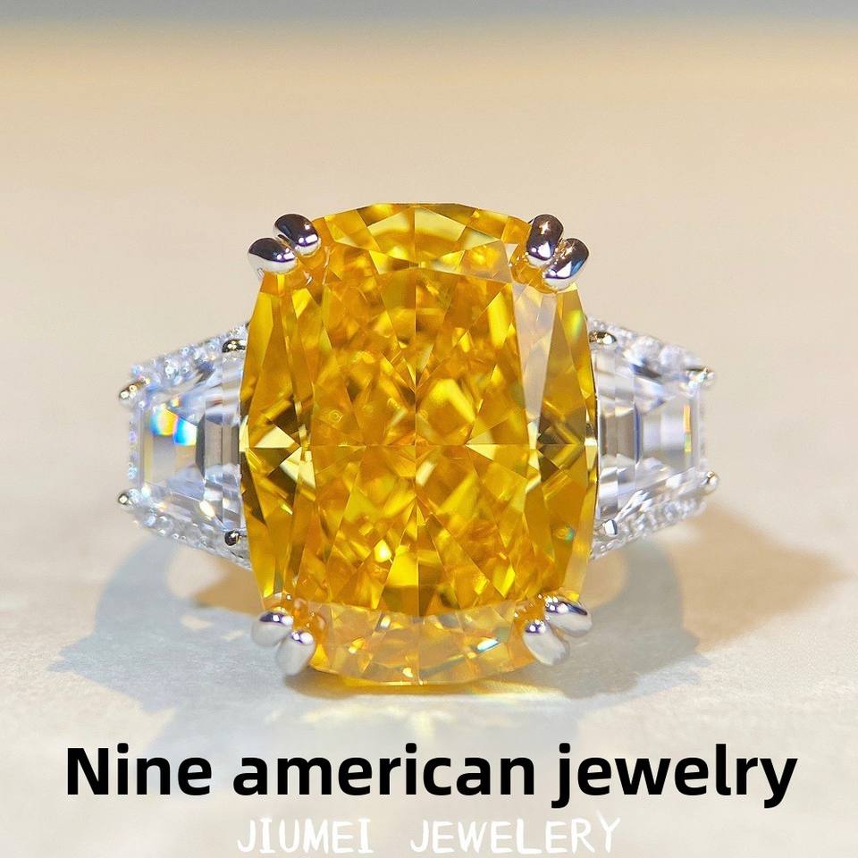 Anillo de moissanita de plata de ley S925 de cien millones feliz azúcar de roca grande 12X16 diamante amarillo corte de Flor de hielo de alto carbono