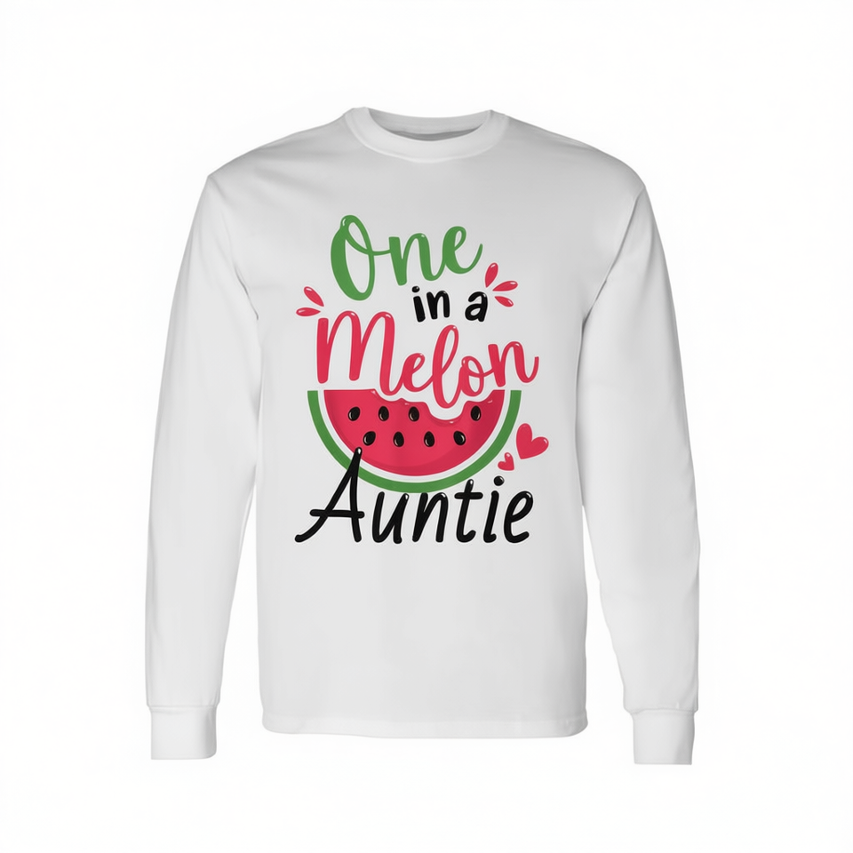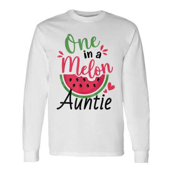 Camiseta de manga larga con cuello redondo y estampado digital para adultos unisex de One in a Melon Auntie, camiseta a juego para la familia, camiseta para fiesta de primer cumpleaños