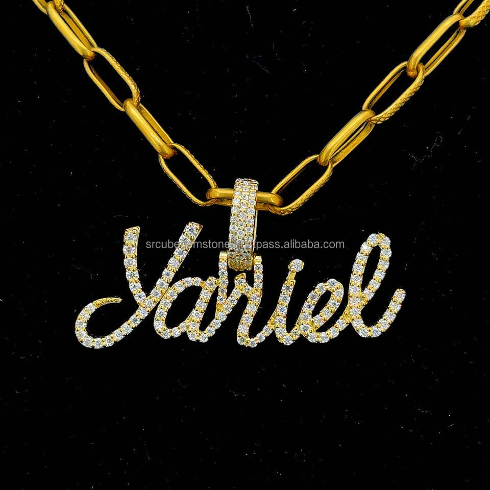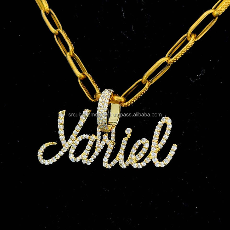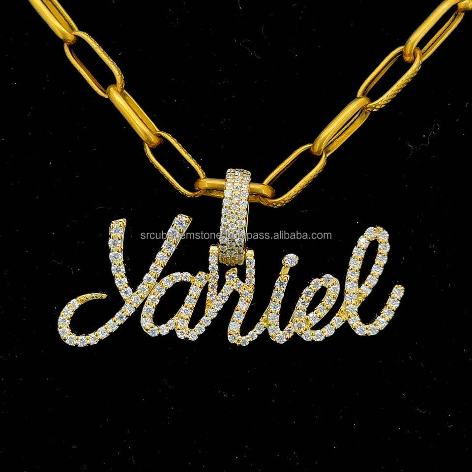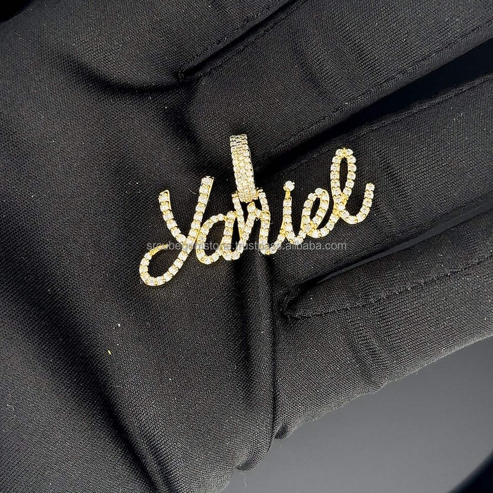 One Pave Setting Colgantes pequeños D VVS1 Letras de moissanita Cursiva Nombre Collar 14K Rodio plateado para fiestas