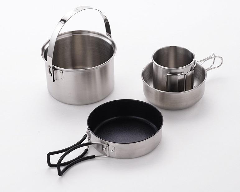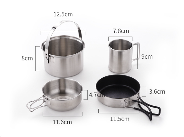 Juego de cocina para acampar al aire libre para una persona con sartén antiadherente y cuenco para aventuras de senderismo
