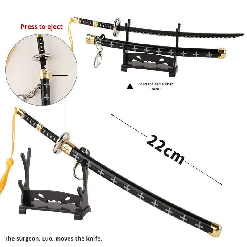 One Piece Anime periférico Akatsuki tercera generación Oni Tachi cuchillo enfundado con resorte arma de aleación 22cm modelo de Adorno