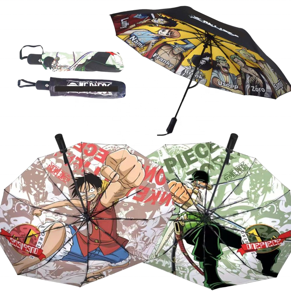 Paraguas de personaje de Manga de una pieza Luffy y Zoro con caja de regalo Paraguas relacionados con Anime de metal para niñas