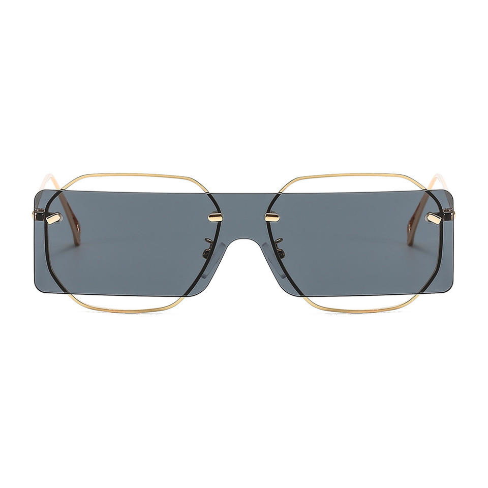 Gafas de Sol Rectangulares de una Pieza, Montura Metálica Poligonal, Modernas, Unisex, Elegantes