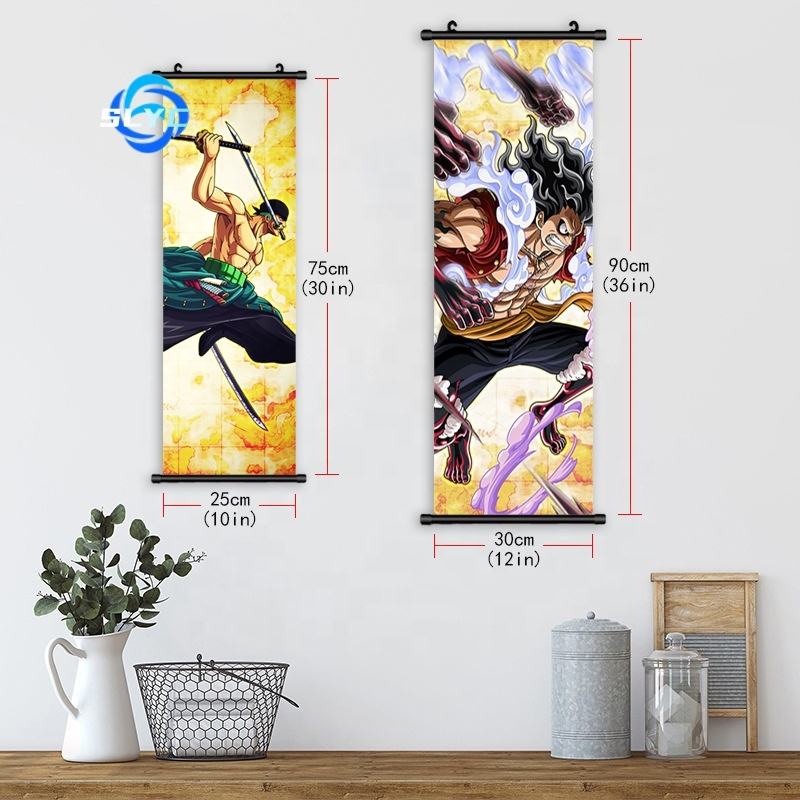 One Pieced Golden Luffy Zoro Anime Wall Scroll Poster dibujos animados dormitorio decoración Comic Con recomendación Manga lienzo pirata arte