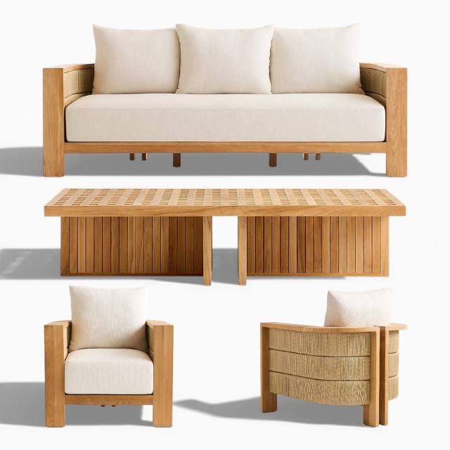Sofá Individual de Diseño Moderno con Estructura de Madera de Teca para Decoración del Hogar